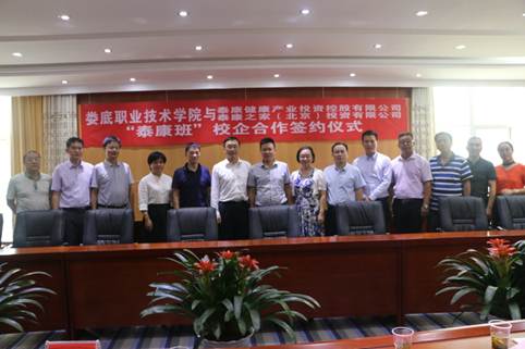 依据协议,娄底职院护理学院与泰康之家(北京)投资有限公司采取“校企合作,定制式培养”模式,共同培养养老护理专业人才。按照“人才共育、过程共管、责任共担、成果共享”的培养原则,学校与企业共同制定人才培养方案,共同培养学生。学校从2018级新生中选拔有意愿到泰康全国医养中心见习和就业的学生30 人,组成护理“泰康班”。企业选拔教师为学生讲授部分课程,依据业务需求安排“泰康班”学生在企业或由企业指定的泰康体系内其他用人单位进行见习和部分实习。企业选定带教老师,指导学生的见习、跟岗实习,共同培养既具备扎实的专业基础知识,又有较强的职业技能和实际工作能力的护理人才(养老方向)。 “泰康班”学生毕业后,经泰康之家用人单位考核合格确认录用,服从用人单位安排、办理入职手续后成为用人单位正式员工。