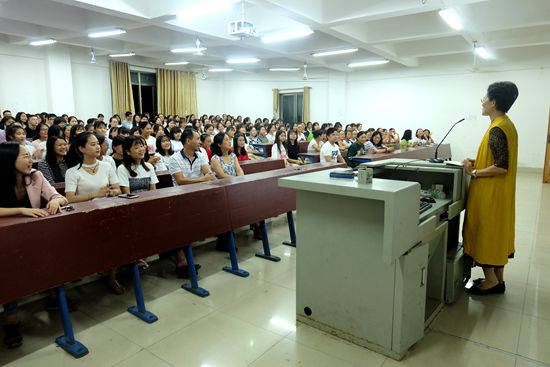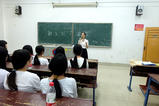 刘燕发表讲话,对新生的到来表示热烈的欢迎,随后带领大家一起读英语,希望同学们能够尽早适应大学的学习生活环境,在将来的学习中明确自己的目标,并对文化传播学院的基本情况做了简单介绍,同时提出在军训生活中遇到不能解决的事情,要主动向辅导员汇报,要处理好新同学之间的关系,在生活中学习上成为好朋友。