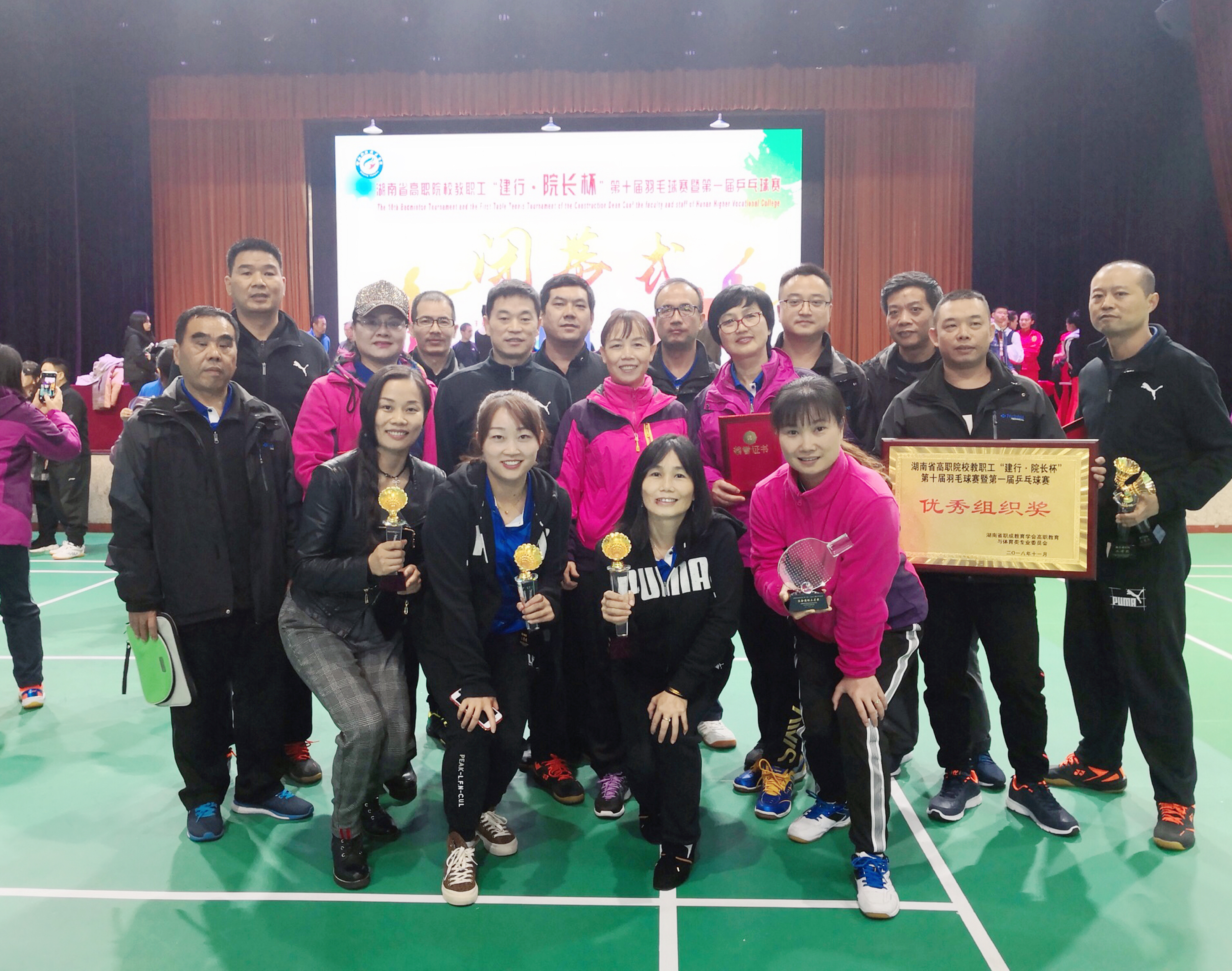 11月11日,湖南省高职院校教职工“院长杯”第十届羽毛球赛暨第一届乒乓球赛在邵阳职业技术学院落下帷幕。闭幕式上,党委书记李文莲在主席台就坐,并为获奖运动员颁奖。威尼斯官网公共课教学部主任付鹏教授(湖南省职业教育与成人教育学会高职教育体育类专业委员会副主任委员)主持了闭幕式。