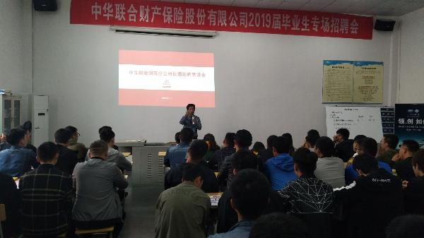 11月5日上午,中华联合财产保险公司在汽车学院对该院2019届毕业生开展专场招聘会。此次会议邀请到中华财险湖南分公司人事资源管理科的马科长为学生进行公司宣讲。汽车学院出席本次招聘会有党总支书记胡治民,副院长苏志华以及各教科主任,汽车学院16级毕业生参加了此次专场招聘会。