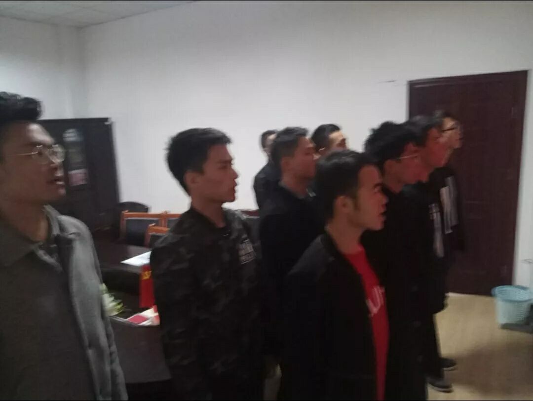 会议一开始,全体人员起立奏唱《国际歌》,铿锵的歌声不仅响彻教室,更把歌曲的深刻意义渗进了每一位党员的心里,望大家铭记与心。激昂的歌声过后,随即带领全体人员进行入党宣誓。举起的右手是我们肩负起的重担,口中的誓词是我们决心的见证。宣誓仪式过后,梁艳丰讲话:“希望每个预备党员将宣誓内容铭记于心,作为一个预备党员积极分子,在毕业之际,希望你们发挥自己的积极作用,做好自己的本职工作,带动同学们站好最后一班岗,铭记你们的党员身份。”