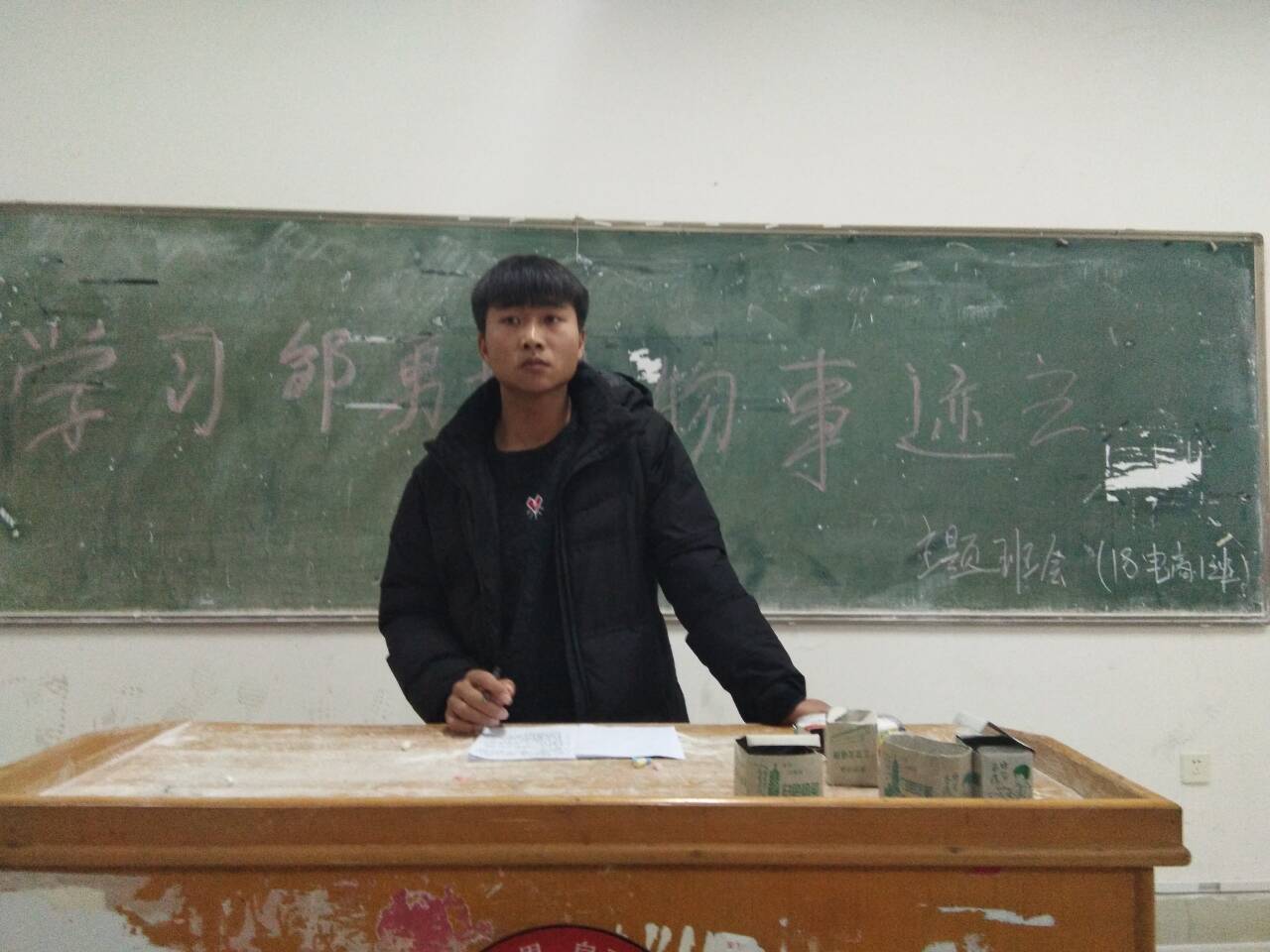 活动伊始,各班班长首先放了邹勇松同学事迹的视频。从视频中我们了解到邹勇松家庭出生、性格品质、学习经历等方面全方位的事迹。他是一位从小身患恶疾却乐观从容、意志坚定,在生活的风雨中坚定前行。他把泰戈尔的经典诗句“世界以痛吻我,要我报之以歌”改为“世界以痛吻我,我要报之以歌”并以此激励自己不断进取时,都很受感动。2018年7月12日,教育部授予邹勇松“全国优秀大学生”荣誉称号。他说,我的生命会比一般人短,我的终身也许只是别人的半辈子,所以我更珍惜时光。我的梦想是当科学家,如果能让社会进步,能改善人们的生活,哪怕提供很小的便利,我都心满意足,没白来世界一趟。