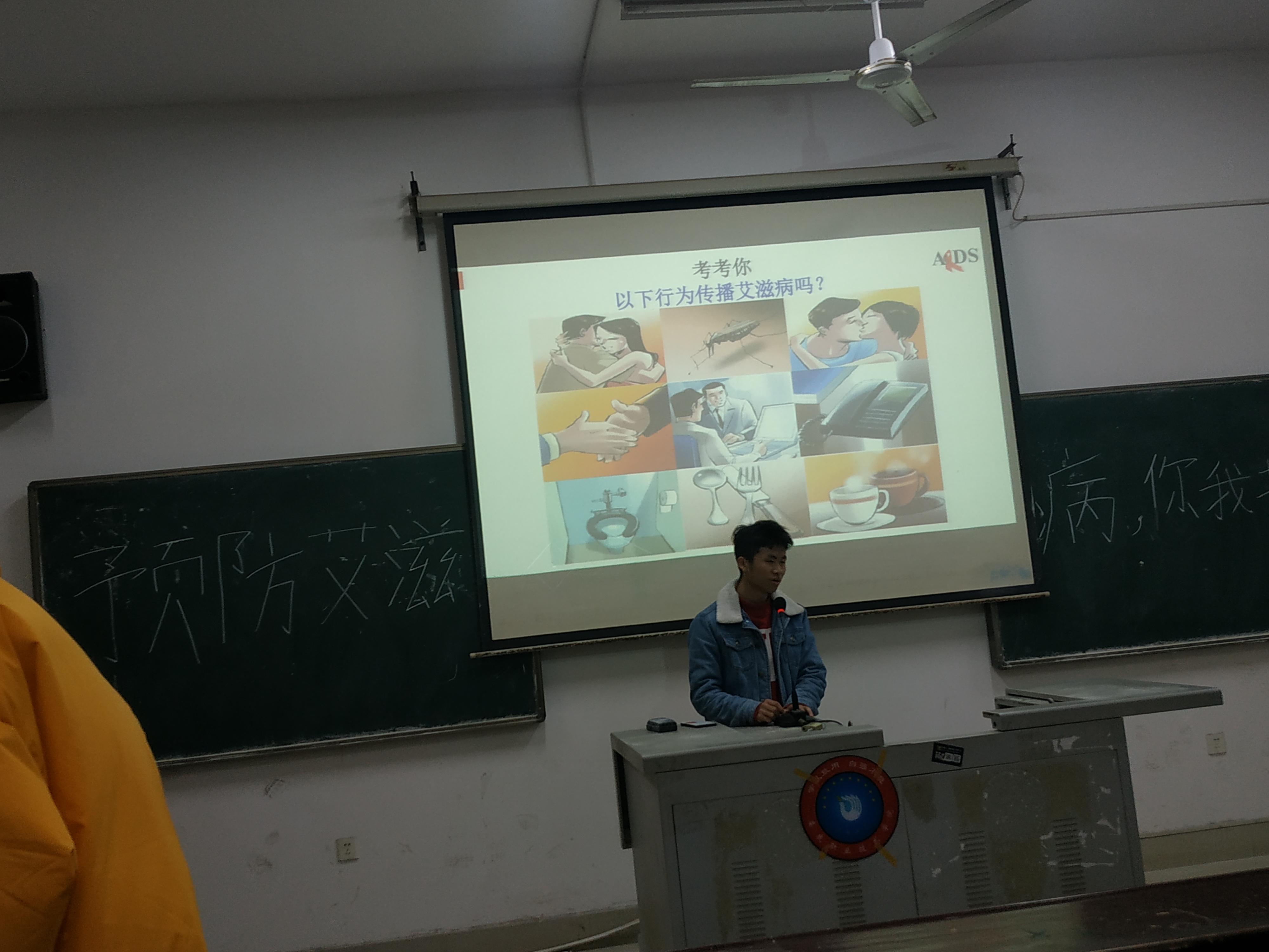 活动伊始,由主持人为同学们讲解PPT,向同学们详细介绍了艾滋病毒的起源以及如何去防范艾滋病的传播。台下的同学们认真做笔记,认真的思考相关问题。随后,班上同学进行了讨论互动,同学们积极提出并共同解答问题,活动气氛相当活跃。每一个环节,同学们都踊跃发言,积极参与,使得本次活动真正带动了大家去关注艾滋病的预防要点。