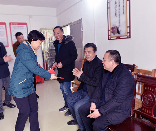 李文莲看望村支委两委成员、乡镇扶贫干部、学校驻村扶贫队员们并送上慰问金,充分肯定了一年以来大家的扶贫工作成绩,道一声辛苦,同时勉励大家再接再厉,为2020年实现全面脱贫目标做好冲刺。