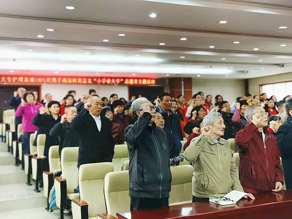 “春风春雨春意浓,党员学习心里红”。4月15日下午,学校离退休党总支在医学院“思邈讲堂”举办“诵党章,学技术,紧跟新时代”主题党日活动。活动由离退休党总支书记张波主持,学校组织部部长吴文贵出席本次活动,各支部党员、护理学院泰康1801班全体同学共130人参加了此次活动。