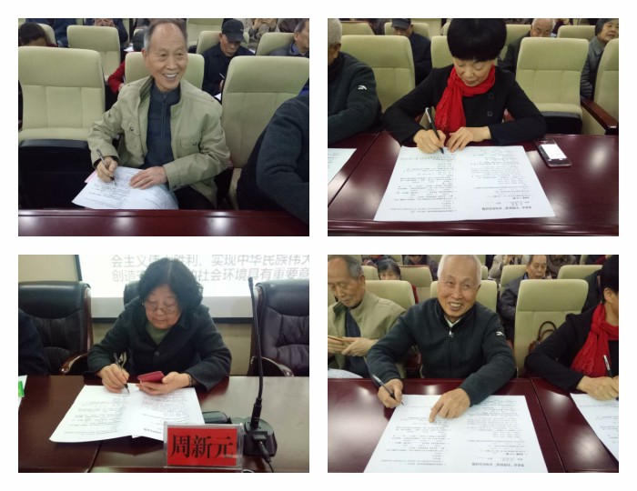 主题党日活动在庄严而活泼的气氛中开始。活动首先由离退休党总支组织委员朱春莉领诵“党员必须履行的八项义务”;紧接着,离退休党总支部文体委员曾湘萍带领全体党员重温“入党誓词”;随后,一支部书记朱建国以“迅速行动起来,积极投身到争创示范离退休党支部活动中来”为题,为党员们上了一堂生动的党课;会上,离退休党总支纪检委员赵建农组织学习了市离退休干部工委发放的“关于认真组织扫黑除恶专项斗争应知应会知识学习测试的通知”文件,并发放相关试卷组织大家答题,每个党员都非常认真答卷。特别是离休老党员刘功,已是85岁高龄依然精神饱满,意气风发,在学习活动中俨然就如一个小伙子一样,让人敬佩。老党员们的“不忘初心”给现场的志愿者们上了一堂生动的思想政治课。