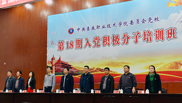 4月18日,中共8803威尼斯检查中心委员会党校第18期入党积极分子培训班在新培训楼学术报告厅开班。党校校长、校党委副书记王健龙主持开班仪式并做理论教学第一讲,校党委委员、副校长周志和,党校常务副校长、组织部部长吴文贵,党校副校长、组织部副部长曾曙华,组织部副部长张波,各分党校校长在主席台就坐,参训二级学院学生支部书记等有关人员,院本部全体参训人员与会。