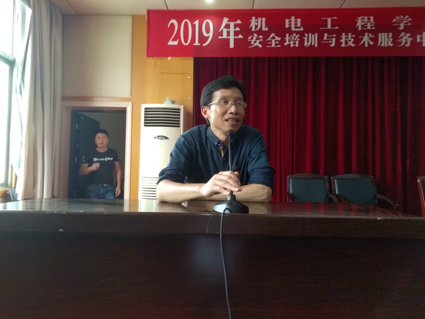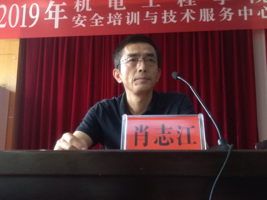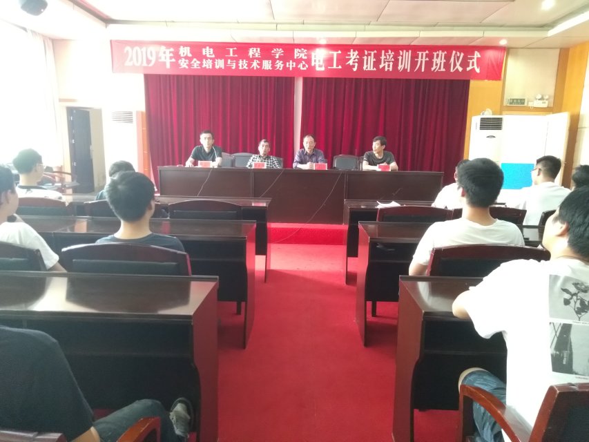 4月26日,机电工程学院安全技术培训与技术服务中心在主教楼报告厅举行2019年电工考证培训开班仪式,机电工程学院院长陈育新、副院长罗正斌、副院长王税睿、安全培训与技术服务中心主任肖志江出席现场。本次活动由肖志江主持。