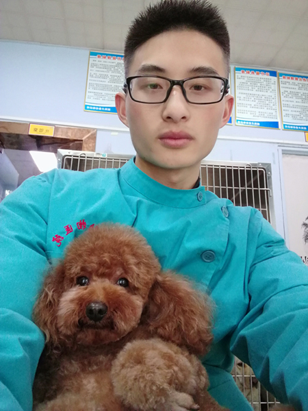 胥世久2018年7月毕业于娄底职院畜牧兽医专业,他顺利考取执业兽医师资格证,现在家乡贵州省遵义市工作,目前已成为遵义团布豆动物医院院长。说到自己的工作,胥世久感叹道:“很累很辛苦,一天工作14小时是常态,但也很有成就感。”胥世久给记者讲述了他和“毛孩子”们(很多宠物主人喜欢把宠物叫做“毛孩子”)的故事。