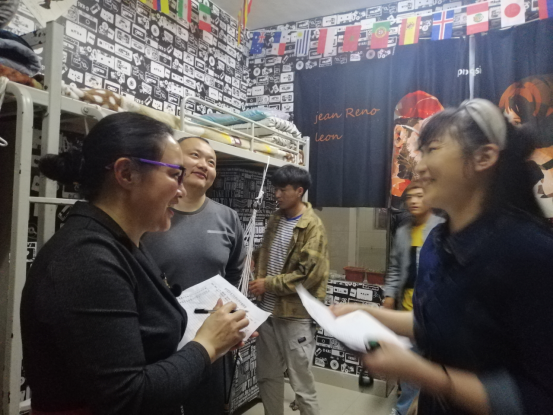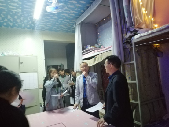 5月7日和5月14日晚9点,农林学院王冬青书记率全体辅导员、老师代表、院学生会干部和校学工处的杨艳芳老师分别对宿舍二栋(女生)、15栋(男生)参评设计大赛的寝室进行了现场评比,无论从整体布置装扮还是卫生整洁方面,这些寝室都给人卫生干净整洁并充满温馨和谐青春创意之感;每个寝室窗明几净,总体布局得体大方清新,学科特色和民族特色明显。其他未报名参赛的寝室卫生也干净整洁。检查过程中王书记表扬了同学们对于此次活动的重视,并告诫同学们“文明要内化于心,外化于行”。