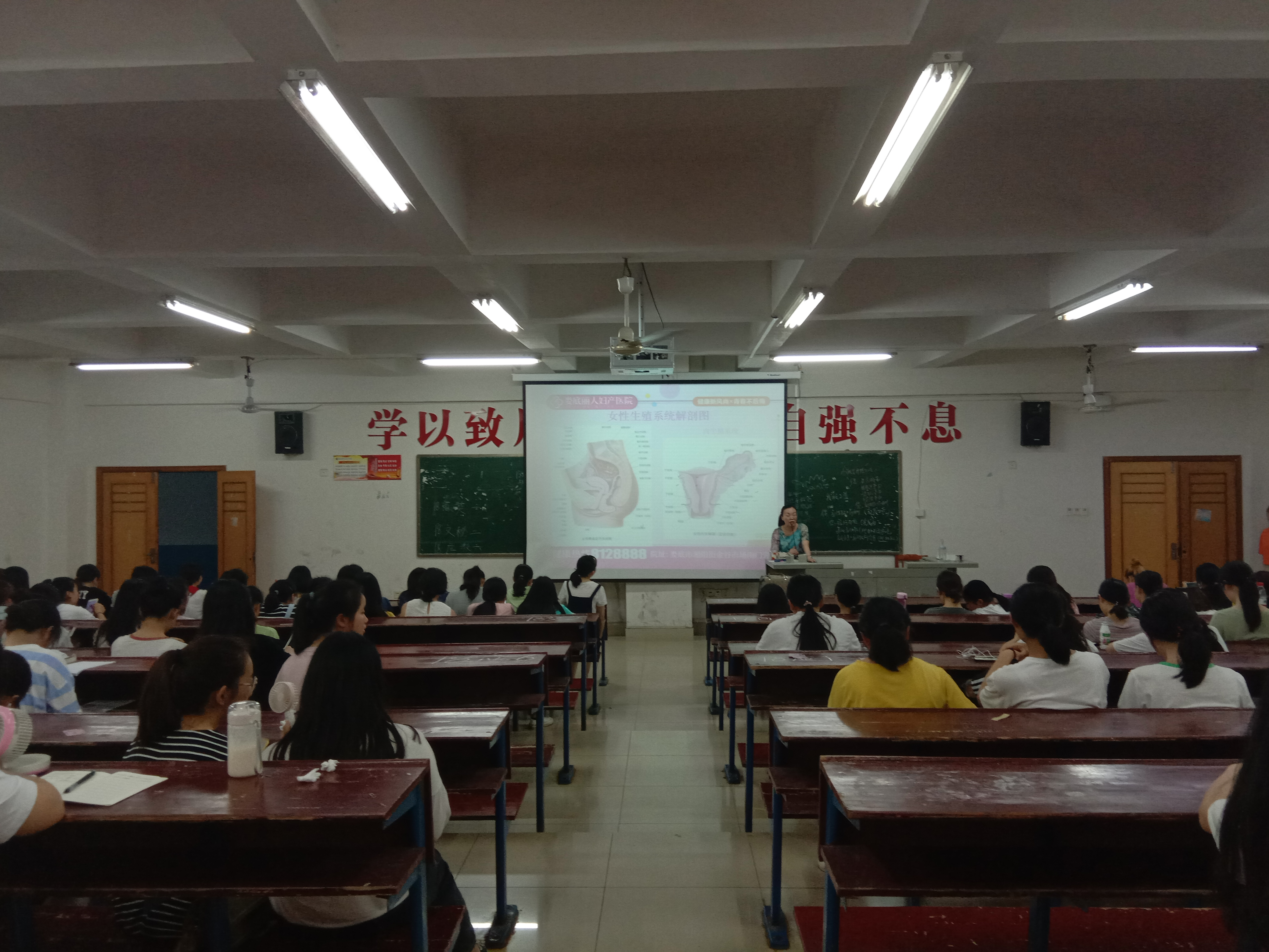 李勇华利用多年的临床工作经验,联系生活实际,给大家介绍了女性生理结构的特点,常见的女性疾病的症状与早期预防,并传授了如何自检以及及时发现疾病的方法,引导同学们全方位的关注自身健康。讲座上,同学们都积极参加互动,从精彩生动的讲解中学到了很多保健知识,受益匪浅。