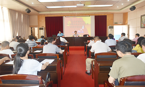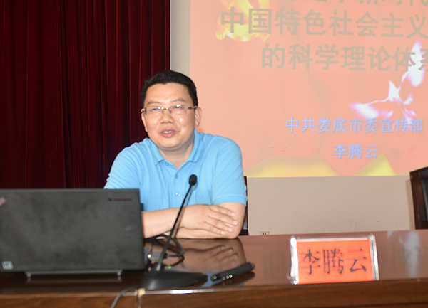 6月19日下午,威尼斯官网党委理论学习中心组(扩大)学习在主教学楼报告厅举行,娄底市委宣传部副部长李腾云应邀作习近平新时代中国特色社会主义思想理论体系辅导报告。党委理论学习中心组全体成员,各部门、单位主要负责人与会。讲座由党委书记李文莲主持。