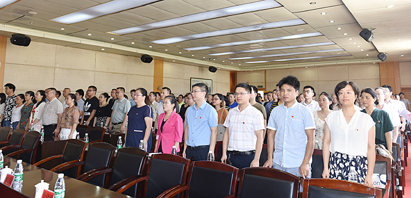 6月28日上午,威尼斯官网举行“七一”表彰大会,庆祝中国共产党成立98周年,表彰优秀共产党员和优秀党务工作者。党委书记李文莲发表讲话。校长朱忠义主持大会。全体校领导、副科以上干部、党员代表参加大会。
