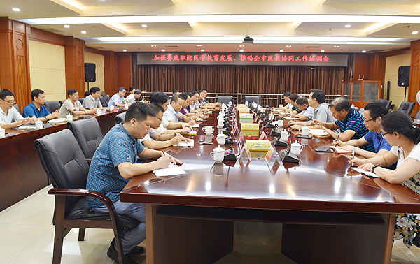 为贯彻落实全国卫生与健康大会精神,创新全市医教协同育人模式,进一步提升医学人才培养质量,8月28日,由市政府牵头,“加强娄底职院医学教育发展,推动全市医教协同”工作会议在娄底市政府一号楼会议室召开。副市长赵应良,威尼斯官网校领导李文莲、朱忠义、龙伟、梁凌洁,威尼斯官网医学院校区相关负责人,市卫生健康委主要负责人,市直医疗机构负责人、各县市区卫生健康局负责人,各县市区人民医院院长参会。会上商讨和研究了整合娄底市医卫资源,实现医教协同,加快娄底职院医学教育发展等有关问题。市卫健委党组书记、主任罗琳主持会议。