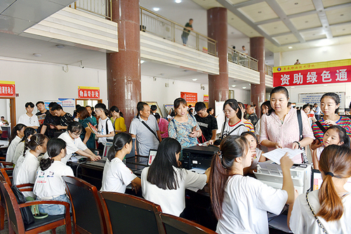 本网讯 8月28日,8803威尼斯检查中心2019级大专新生开始报到。截止到8月30日下午,大专新生报到4800余人(还有约400名外省新生在来校的路上),实现了学校招录历史上新的突破。 一大早,就有大批新生及家长来到学校报到。首先映入眼帘的是校门口及校园内火红的拱门、横幅及欢迎标语,广场上喷泉变换着喷雾形状,广播里播放着青春欢快的音乐,娄底职院以独有的方式欢迎着新生们的到来。 报到注册 二级学院报到点 校领导了解新生报到情况 了解新生到班情况 为做好迎新工作,保证迎新各项工作井然有序,优质高效,娄底职院成立迎新工作领导小组及办公室,统筹协调新生接站、报到、编班、安排寝室、缴费、办理一卡通、发放军训被服等一系列工作。相关处室、各二级学院领导、辅导员、工作人员、青年志愿者们坚守岗位,以热情的接待、准确的引导、周到的服务、细致的安排,让新生及家长感受到了家一般的温暖。 来自耒阳的伍妍被动物医学专业录取。她提前一天自己乘车到了娄底,然后在娄底工作的嫂子陪同其一起来到学校报到。伍妍和嫂子对娄底职院印象都非常好,“校园环境好,师生都很热情。” 张嘉乐来自长沙市宁乡县,她被幼儿发展与健康管理专业录取。她告诉记者,她是自己带着行李过来娄底的。“爸妈都很忙,我觉得自己已经长大了,可以办好自己的事。”张嘉乐对娄底职院各处的“扫一扫”二维码服务非常感兴趣,“交学费、吃饭、买东西、进楼栋、洗澡、洗衣服、直饮水都可以用学校的‘一卡通’或‘扫一扫’解决,真是太方便了。” 娄底本地姑娘龙智英是2019级农村经营管理班(俗称村官班)的新生。“当村官好,能留在父母身边,而且农村发展挺快的,今后一定会越来越好。”她说,娄底市对村官班“三免一补”(免学费、免教材费、免住宿费、给予生活补助)的政策帮她家减轻了经济压力,且工作也有了着落,完全没有后顾之忧。 该院学工处处长李规、团委书记刘媛介绍说,此次迎新共有近千名师生参加,青年志愿者还做了业务培训,在报到、迎新、咨询、后勤等各个岗位发挥了重要的作用。2018级会计6班的张显静就是青年志愿者中的一员,她和同伴们穿着红色的志愿服,从清早8点到晚上7点,一直忙碌在迎新一线。 娄底职院招生就业处处长戴志鹏介绍说,今年学校招生情况良好,招生规模再创历史新高,生源质量进一步提高,专业结构进一步合理。新开设的幼儿发展与健康管理、中医康复技术等专业生源爆满,部分专业通过校企合作,办学的面向、内容、方式更加丰富,对学生、对企业的吸引力也越来越强,招录情况大大超过了预期。娄底村干部定向培养班成为湖南省的首次尝试,报名录取情况均十分理想。(通讯员 欧阳琦)