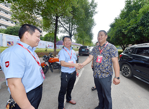 万顺爱心接力:从永州(穿蓝色工作服者)到娄底(常服者)