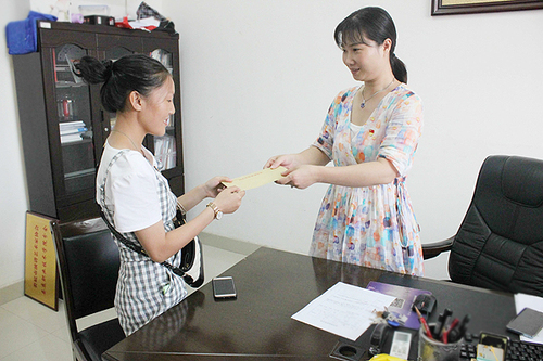 (娄底职院团委书记刘媛给韩力发送助学金)