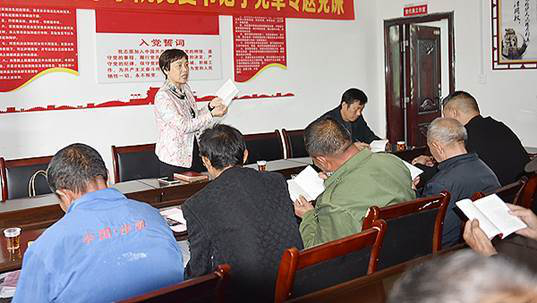 李文莲组织大家学习了《中国共产党党章》,讲述了入党的条件、要求、程序。“我们要对着党章,扪心自问:入党后为党做了什么?”