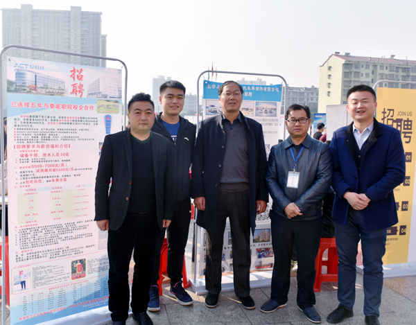 周舟(右一)、李勇(左二)与汽车学院、招生就业处领导合影