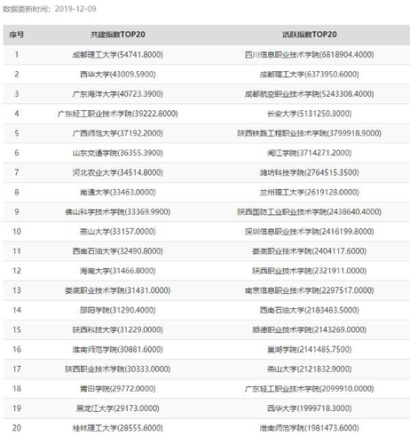 (教育部易班发展中心11月共建指数、活跃指数排名情况)