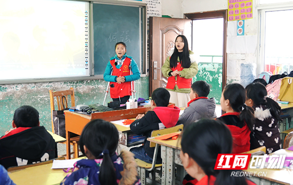 下午1点左右,韩力和校青工部的志愿者们来到了娄底市娄星区石井镇河北小学。走进教室前,韩力笑着说,第一次支教,还有些紧张。