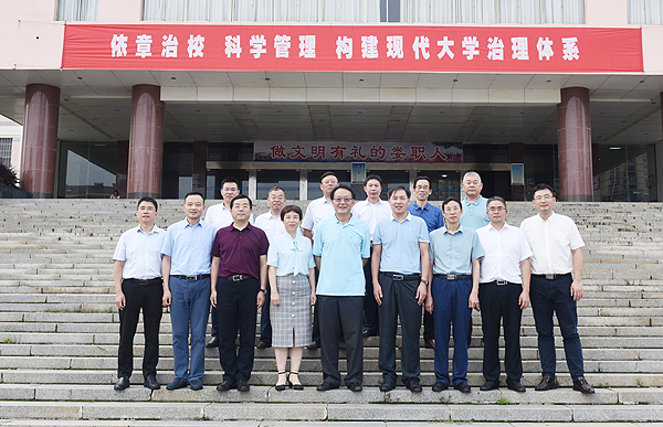 反馈会后,威尼斯官网领导与督导组专家在主教学楼前合影。(刘艳)
