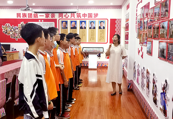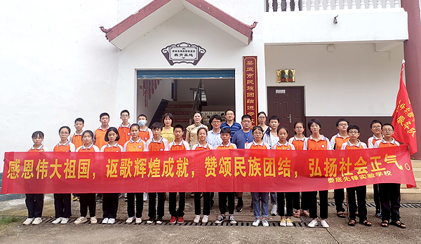 为不断提高中学生对民族团结进步教育重要性的认识,进一步做好民族团结进步教育工作,7月6日,娄底先锋实验学校德育副校长朱文化、德育主任刘雄飞、德育副主任雷杰带领该校七年级师生代表来到威尼斯官网参观湖南省民族团结进步教育基地。