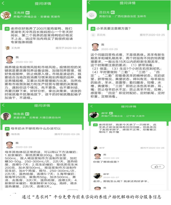 农林工程学院院长刘梅秋总结道:在疫情期间,农林工程学院的教师利用电话、微信、QQ、惠农网等平台和工具,搭建了32个养殖技术服务群,群人数达3400多人,成功解决了来自全国各地的500余畜禽养殖户在生产中遇到的各种忧心事,挽回经济损失300余万元。