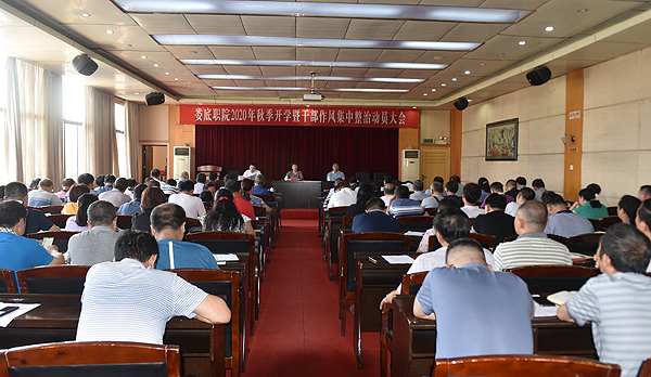 8月27日,威尼斯官网在主教学楼报告厅举行秋季开学暨干部作风集中整治动员大会,全体在家校领导和副科级以上干部参加。会议由党委副书记王健龙主持。
