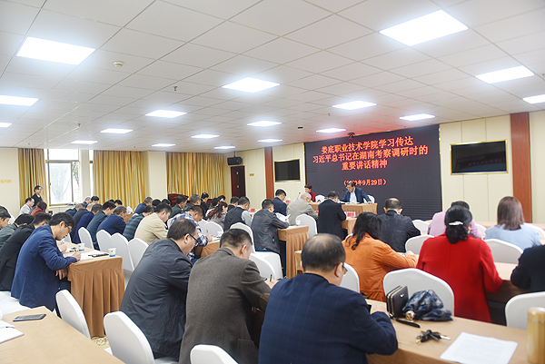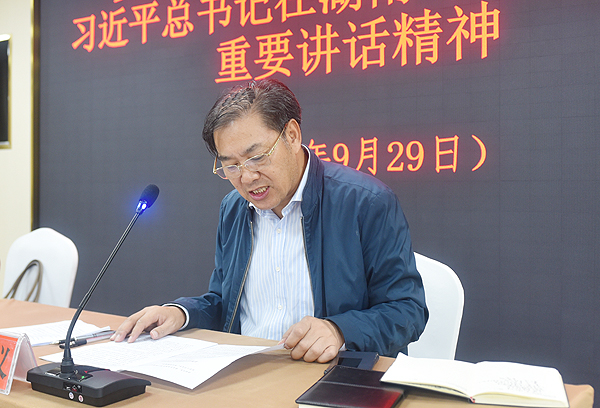 校长朱忠义领学了习近平今年9月17日在湖南基层代表座谈会上的讲话精神。