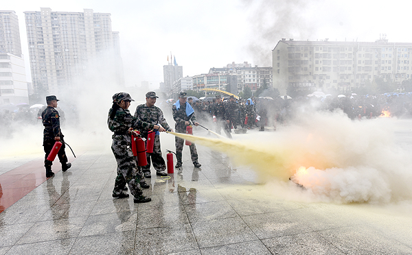 学校保卫处副处长伍琳在动员讲话中指出,“安全工作无小事”,学校安全事关社会稳定,事关每个家庭的幸福、安宁,是学校各项事业发展的前提和基础。他希望广大同学珍惜此次学习观摩的机会,以积极、严肃、认真的态度参加演练,了解、学习消防知识,锤炼和提高面对暴力恐怖、火灾等突发事件的应对能力。