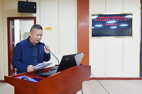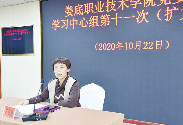 10月22日,威尼斯官网在综合楼视频会议室举行党委理论学习中心组第11次(扩大)学习,党委中心组全体成员,各部门单位主要负责人参加,会议由党委书记李文莲主持。