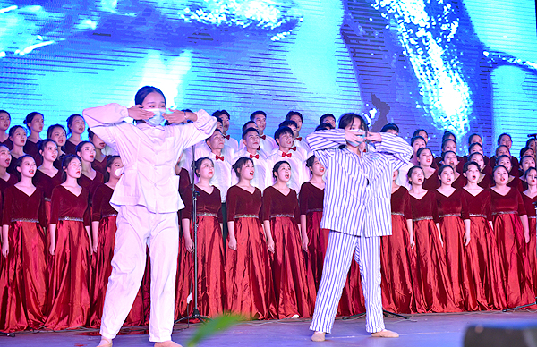 庚子鼠年,一场突如其来的疫情席卷神州大地,面对来势汹汹的疫情,全国人民上下一心,众志成城,打响了抗疫阻击战。11支参赛队伍以各行各业抗疫故事为基础,用朗诵与歌曲相结合的方式,或气势恢宏,或悲怆激昂,或青春洋溢,或温情脉脉,将面对新冠疫情时,举国上下同心协力共同抗疫的情景进行了深刻演绎。朗诵《逆行者礼赞》、《致敬最美逆行者》、《盛世中国》、《驱逐死神的天使》、《新时代最美的交响》、《春天更美好》、《逆行的光》、《最美的逆行者》、《因为有你》、《也许,是你我》、《我自豪,我们是城市建设者》逐一向新时代抗疫者致敬;合唱《我们走在大路上》、《我爱你中国》、《军港之夜》、《你要相信这不是最后一天》、《大鱼》、《国家》、《我和我的祖国》、《祖国颂》、《复兴的力量》唱出了娄职学子对祖国的祝福,唱出了身为中国人的骄傲,唱出了坚定不移地创造美好生活的心声。精彩的表现赢得了台下一阵又一阵掌声。