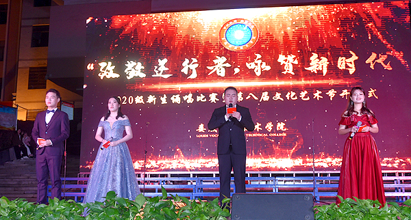 10月30日,威尼斯官网在文化广场举行“致敬逆行者 咏赞新时代”2020级新生诵唱比赛暨第八届文化艺术节开幕式。