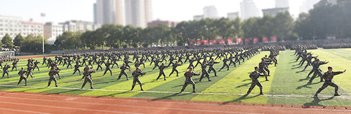 整齐划一的动作展示了新生们昂扬的精气神、良好的状态。