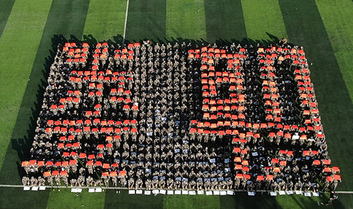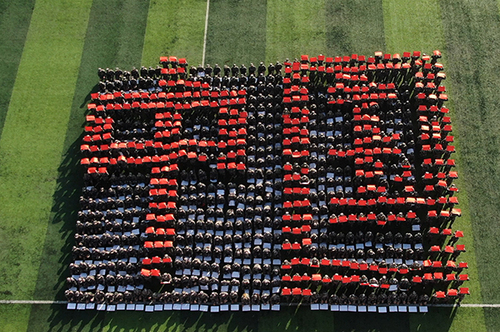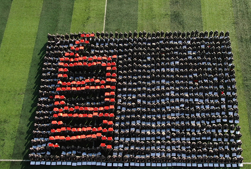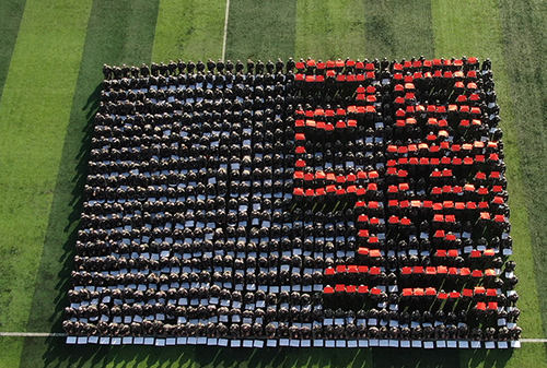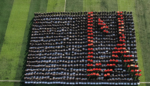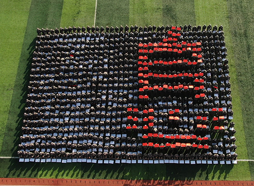 在最美好的祝福中,新生开学典礼圆满结束。(通讯员 欧阳琦) (航拍图片由娄底市一八影视文化传媒有限公司提供)