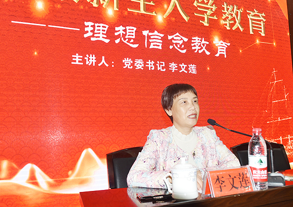 认识大学。李文莲开宗明义地指出:“大学,是提供教学与科研的高等教育机构,承担着人才培养、科学研究、服务社会、文化传承和创新的职能。”她分析了大学与中学的主要区别,职业教育与普高教育的联系与不同,为在座新生介绍了娄底职院的发展历史和现状。并郑重承诺:学校已经为同学们的成长成才做好全部的人、财、物准备,“只要你努力,学校就托举”!