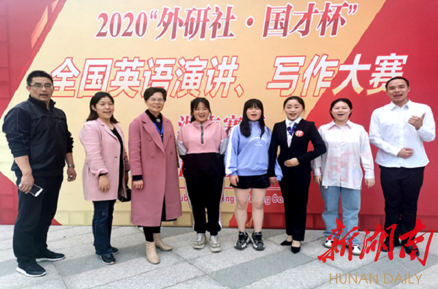 湖南日报·新湖南客户端11月6日讯(通讯员 谢花萍 龚文锋)10月25日,2020“外研社·国才杯”大学生英语演讲、写作大赛(高职高专组)湖南赛区复赛在湖南外国语职业学院顺利举办。共有来自40所院校的149名选手进入本次演讲、写作大赛复赛。在文化传播学院院长刘燕、教学院长肖付良及指导老师谢杰、谢花萍、龚文锋的精心指导下,8803威尼斯检查中心学子取得了优异的成绩。其中谢杰老师指导的18应教3班彭梓甜同学获演讲比赛一等奖;谢花萍老师指导的18应教3班姚佳同学获二等奖;龚文锋老师指导的18商英1班甘慧芳同学获写作大赛(专业组)一等奖、委培护理1901班段嘉晖、覃雨清同学分别获写作大赛(公共组)一等奖和三等奖。