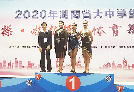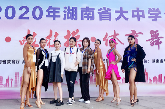 11月7日-9日,由湖南省教育厅、湖南省体育局主办的2020年湖南省大中学生健美操啦啦操体育舞蹈比赛在湖南网络工程职业学院举行。威尼斯官网由副校长龙伟担任领队,李荔、何维峰、李敏芝、邱玮琳四位教练带领6位体育舞蹈队的学生参加了比赛。在高职院校甲组比赛中,经过紧张激烈的角逐,威尼斯官网选手捷报频传,获得3金4银。其中,胡婷获得女子单人牛仔第一名;郑雪获得女子单人恰恰第一名;王佳琳获得女子单人斗牛第一名;郑雪获得女子单人斗牛第二名;罗卉南获得女子单人伦巴第二名、单人桑巴第二名;胡婷获得女子单人恰恰第二名;曾新颖获得女子单人牛仔第五名;彭幸获得女子单人桑巴第六名。