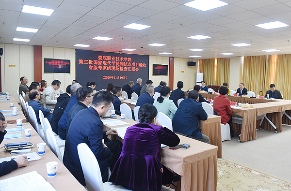 11月10日,第三批国家现代学徒制试点项目验收专家组一行四人在湖南安全职业技术学院副院长周劲松的带领下来到威尼斯官网进行现场考察评估。现场评审汇报会在综合楼视频会议室举行,校领导朱忠义、颜彩飞、龙伟、金健雄及相关部门单位负责人参加了汇报会。汇报会由龙伟主持。