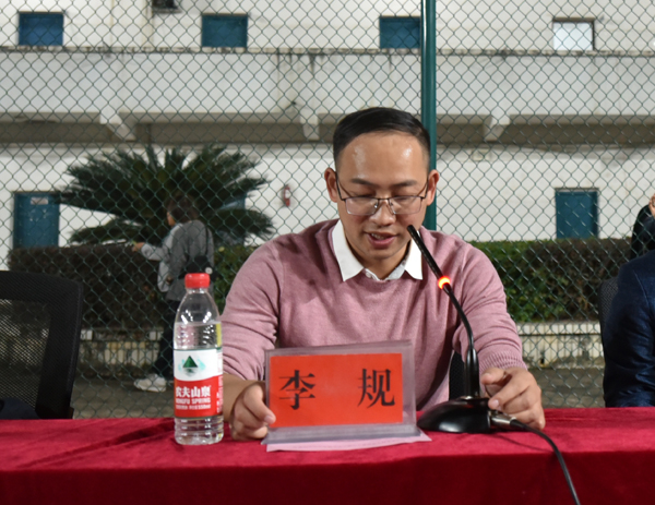 李规作总结发言,他代表学生工作处向取得优异成绩的代表队表示热烈祝贺,向付出辛勤劳动的各位裁判员及工作人员表示衷心感谢,同时希望全体同学以这次篮球比赛为契机,把精诚团结、顽强拼搏、勇攀高峰、催人奋进的比赛精神转化为强大的学习动力,以更饱满的热情、昂扬的斗志投入到校园文化建设中。