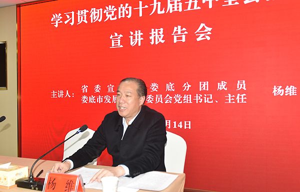 杨维在宣讲中紧紧围绕习近平总书记在党的十九届五中全会上的重要讲话精神和全会审议通过的“十四五”规划《建议》,从充分认识、深刻把握“十三五”时期特别是“十三五”收官之年的突出成就充分彰显了中国共产党领导和中国特色社会主义制度的显著优势和人民力量;“十四五”规划《建议》是习近平总书记亲自领导,汇集全党全社会智慧的成果;全会《建议》的核心要义体现在进入新发展阶段、贯彻新发展理念、构建新发展格局;2035年远景目标和“十四五”时期我国发展的指导方针、主要目标、重点任务;实现“十四五”规划和2035年远景目标必须坚持党的全面领导,必须贯彻以人民为中心的发展思想,动员各方面力量为之团结奋斗;十九届五中全会精神和习近平总书记考察湖南重要讲话精神是紧密联系、有机统一的,必须贯通起来学习、统筹起来落实,让五中全会精神和总书记考察湖南重要讲话精神在三湘大地扎下深根、开出繁花、结出硕果等6个方面的内容,对全会精神进行了系统阐述和深入解读,对习近平总书记在全会上提出的一系列新思想新观点新论断新要求,进行了深入浅出的权威辅导。同时,杨维还对娄底市如何贯彻落实党的十九届五中全会精神和习近平总书记考察湖南重要讲话精神,绘制“十四五”发展蓝图做了指导性分析。