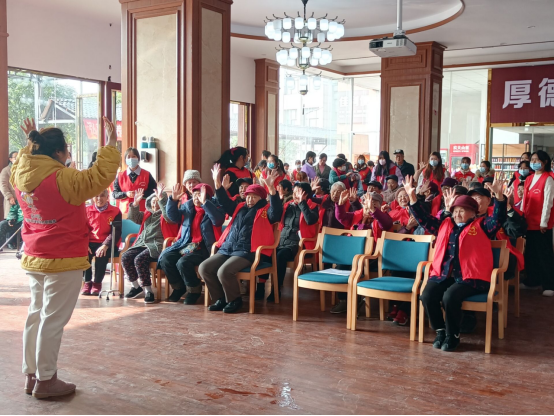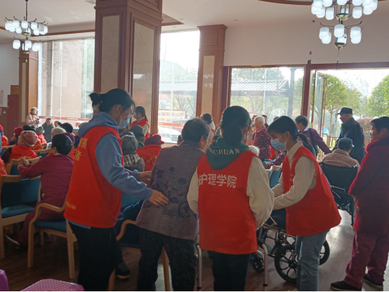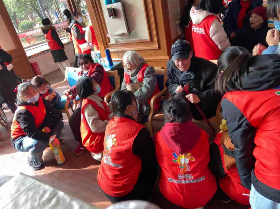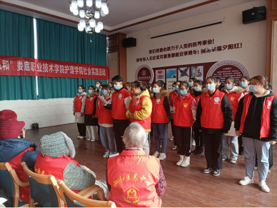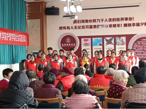 11月29日上午,护理学院老年照护教研室主任岳亮老师组织本室教师和团总支青工部志愿者来到泓和医养中心开展社会实践活动。在这个寒冷的冬天给老人们送去温暖、送去爱心、送去健康、送去笑声,让老人们感到我们关心,让老人们感到幸福快乐,让这个冬天不再冷。