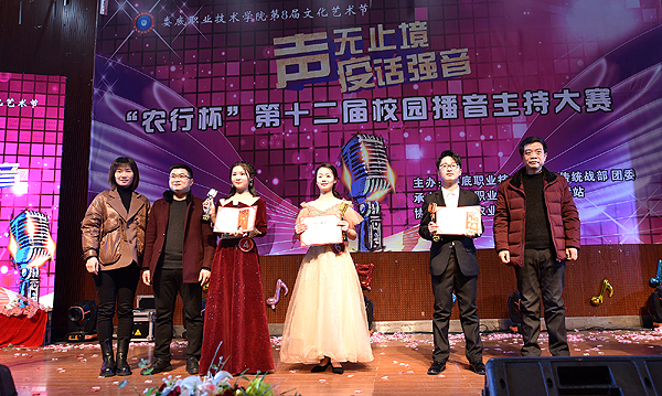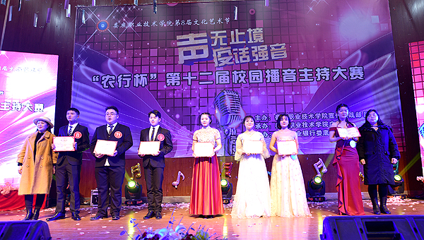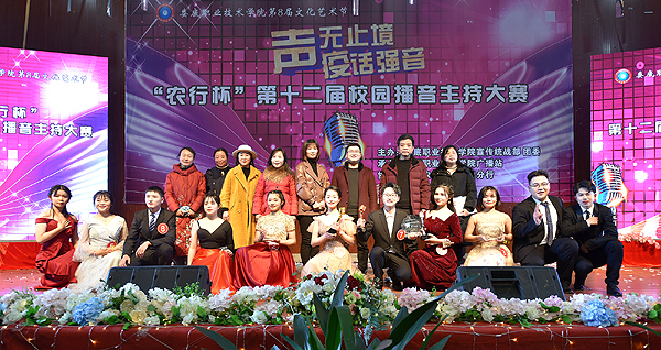 经过评委们的专业评审,最终6号选手郭梦阳获得金话筒奖、4号选手刘梦雨获得银话筒奖、7号选手黄凯获得铜话筒奖,彭书姿等8位选手获得优胜奖。此外,3号选手秦海英通过网络投票赢得了“最具人气奖”,2号选手唐诗怡获得“最佳台风奖”,6号选手郭梦阳获得“最佳才艺奖”,7号选手黄凯获得“最佳口才奖”。出席大赛的嘉宾和评委为选手颁奖并合影留念。(赵炜 李湘 刘妍 罗嘉琪 赵亚芳 张汀梅 吴翔)