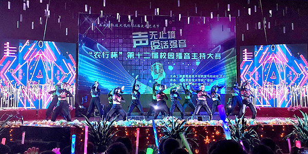 大赛伊始,校广播站和文化传播学院舞蹈队带来的开场舞为现场营造了热情欢快的气氛。在“我型我秀”环节中,11名选手依次亮相,用独特的方式进行了自我介绍,展示出自己的闪耀风采;“播音主持”环节,参赛选手分别带来了《中国阻击战》、《美丽家乡》、《朗读者》、《中国故事》等各具风格的个性主持,他们或慷慨激昂,或温文尔雅,或风趣幽默,释放出高超的语言魅力,精彩的表现博得了台下观众的阵阵喝彩;“才艺展示”环节,舞蹈、唱歌、小品、戏曲、双簧等,充分展示了个人才艺优势,观众们一饱眼福;“即兴评述”环节,6名选手用出色的临场应变能力及口才表达,赢得了在场评委及观众的一致好评。比赛中还穿插了抽奖环节及广播站朗诵、街舞、合唱等精彩节目,气氛热烈,为赛事增添了一抹亮色。