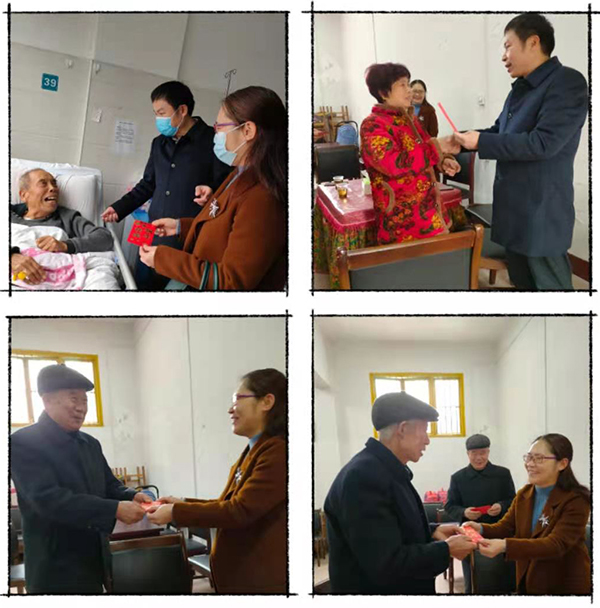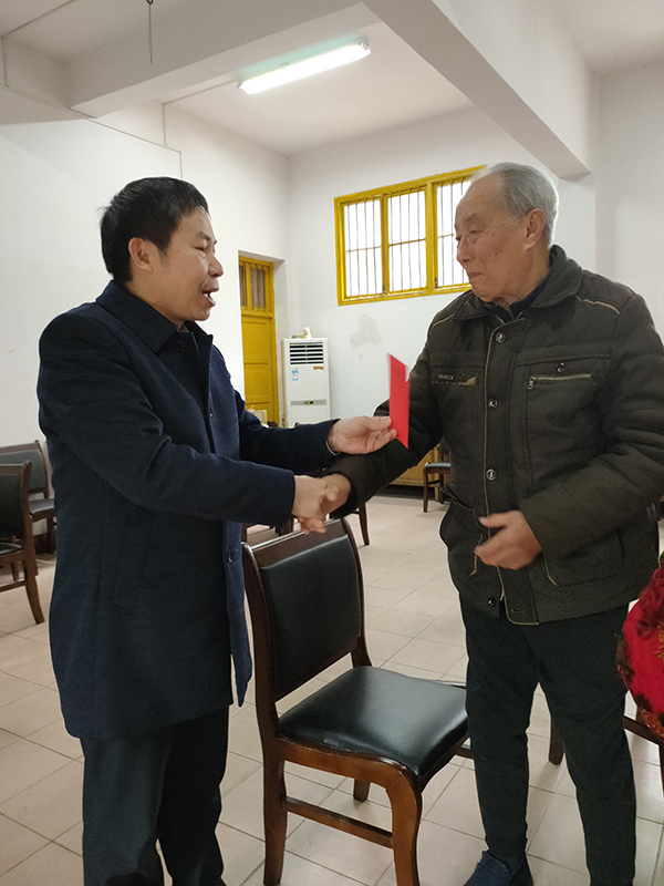 领导们为老干部、老党员们送去了学校党委、行政的关怀,与他们拉家常、话发展,详细询问他们的身体健康、生活状况等情况,对他们为学校发展做出的贡献表示感谢,希望他们一如既往地关心和支持学校的建设与发展,祝愿大家保养好身体,生活幸福,并送上了慰问金、春联。
