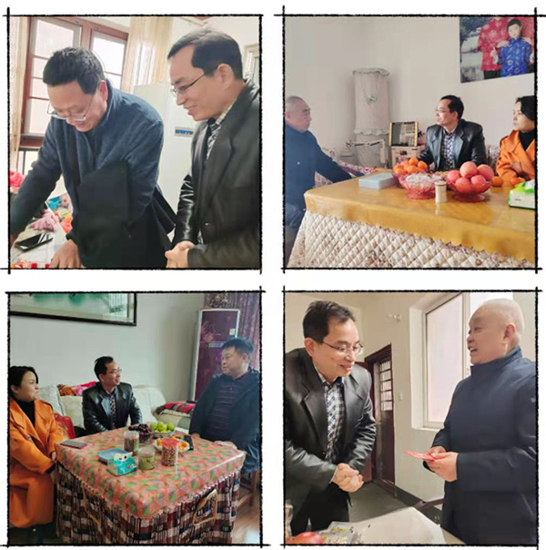 2月3日农历小年前夕,校领导朱忠义、张征澜、王健龙、游新娥、申晓伟、欧芳分组走访慰问了威尼斯官网离退休市管干部和部分老党员。