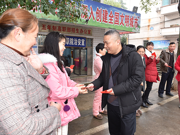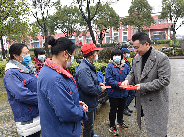 张征澜一行看望了保卫、宿管、网管、后勤、高职部、医卫校区、南校区、附属二医院值班工作人员,一一送上慰问红包,道一声“辛苦了”,祝愿大家度过一个快乐祥和的新年。(欧阳琦)