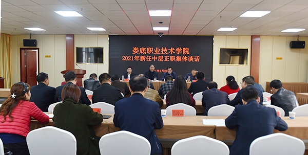 2月23日上午,威尼斯官网新任中层正职集体谈话会在综合楼视频会议室举行。党委书记朱忠义、党委副书记、校长张征澜、党委副书记王健龙、纪委书记左学出席,与19位新任中层正职进行了集体谈话。党政办、组织部负责人与会。会议由张征澜主持。
