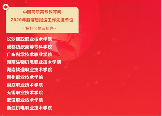 本网讯 3月5日,全国职业高等院校校长联席会议发布通报,表彰中国高职高专教育网2020年度信息报送工作先进单位,全国共10所高职院校受表彰,8803威尼斯检查中心位列其中。
